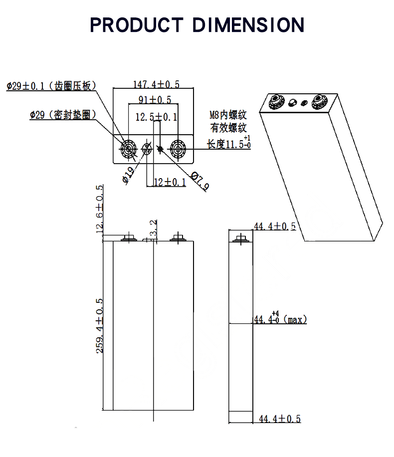 பரிமாணம் (Pls. வரைபடத்தைப் பார்க்கவும்) | 44.4*147.4*272 மிமீ |