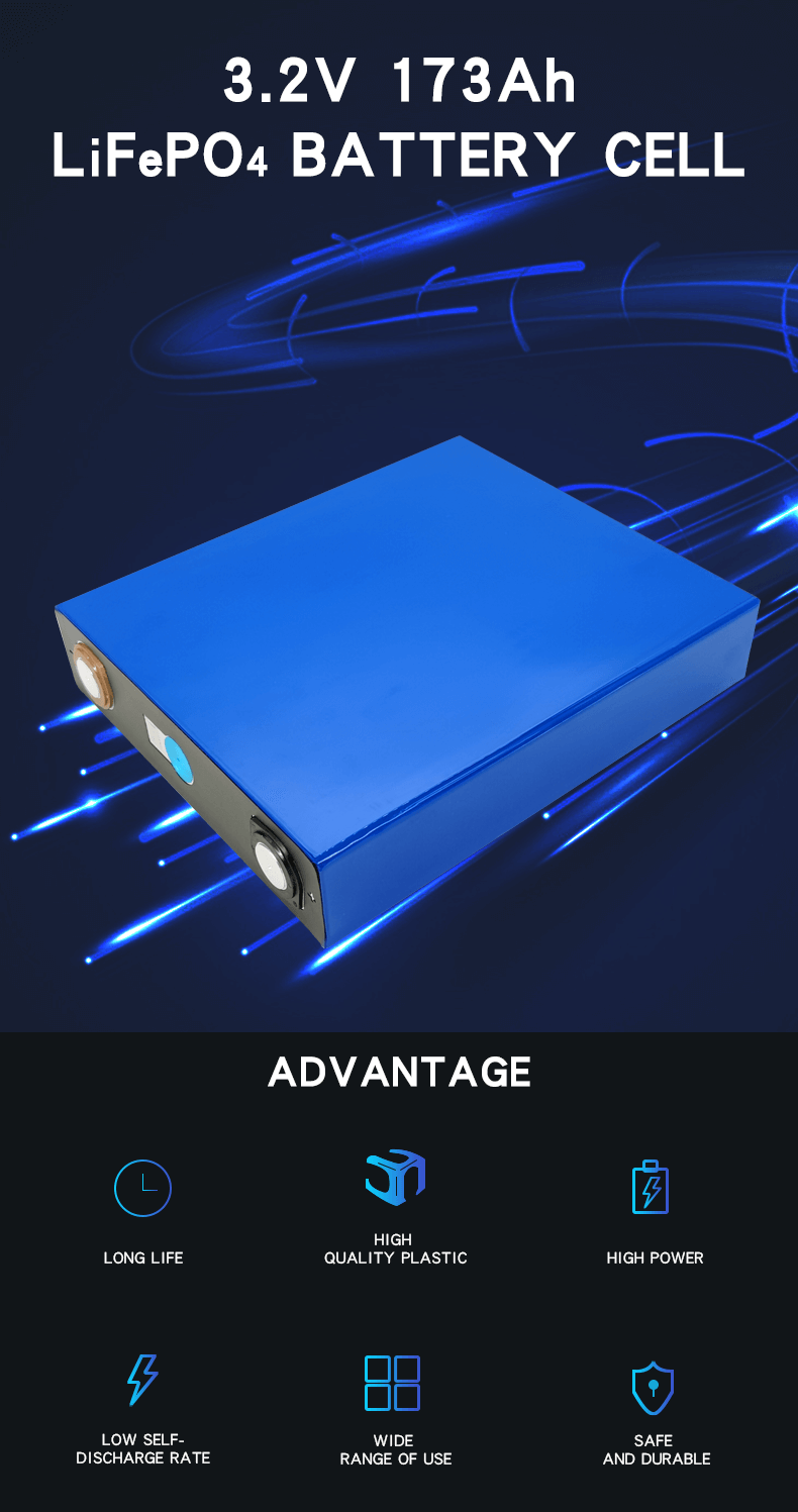 இந்த UL சான்றளிக்கப்பட்ட 3.2V 173Ah LiFePO4 பேட்டரி செல் பின்வரும் நன்மைகளைக் கொண்டுள்ளது: