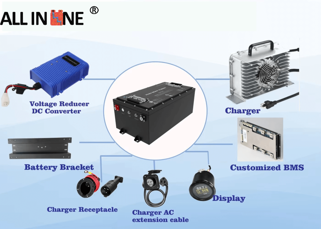 7) சார்ஜர், மின்னழுத்த குறைப்பான், அடைப்புக்குறி போன்ற முழுமையான கணினி தீர்வை நாங்கள் வழங்க முடியும்.