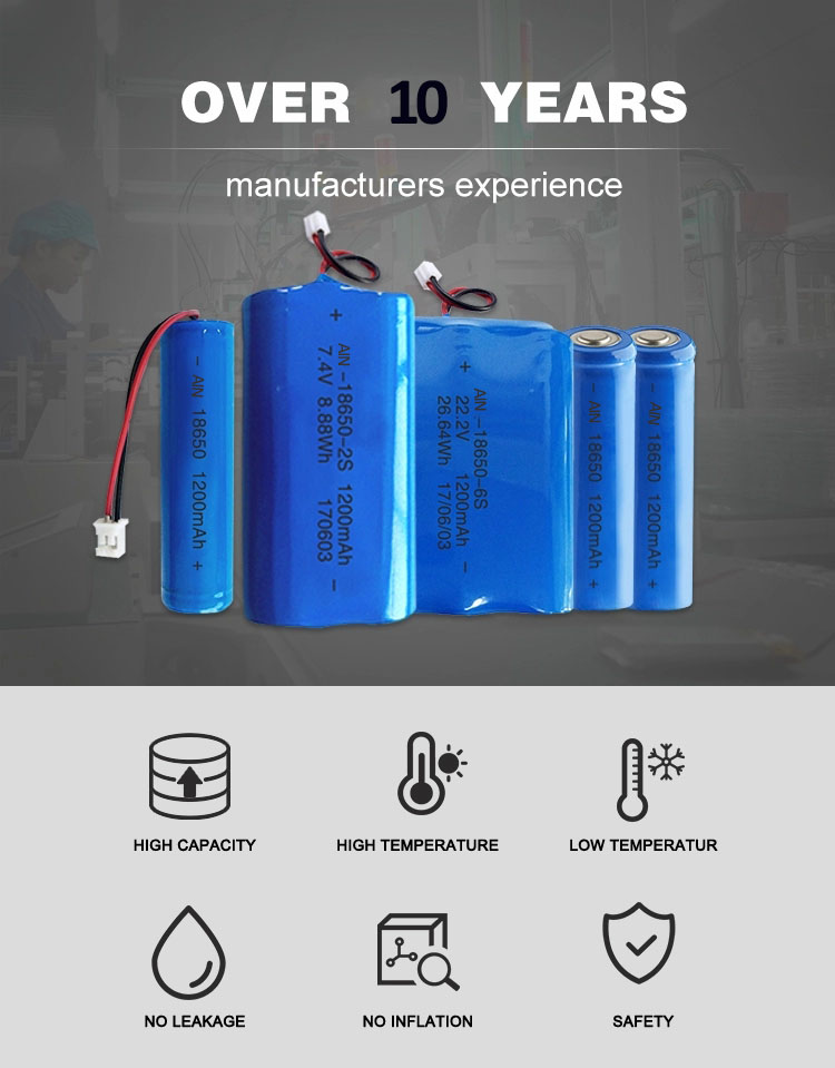 (1). பெரிய திறன். 18650 லித்தியம் பேட்டரி திறன் பொதுவாக 900mAh - 2600mAh க்கு இடையில் இருக்கும். 18650 லித்தியம் பேட்டரி பேக் சாதாரணமாக 5000 எம்ஏஎச் மூலம் உடைக்க முடியும்.