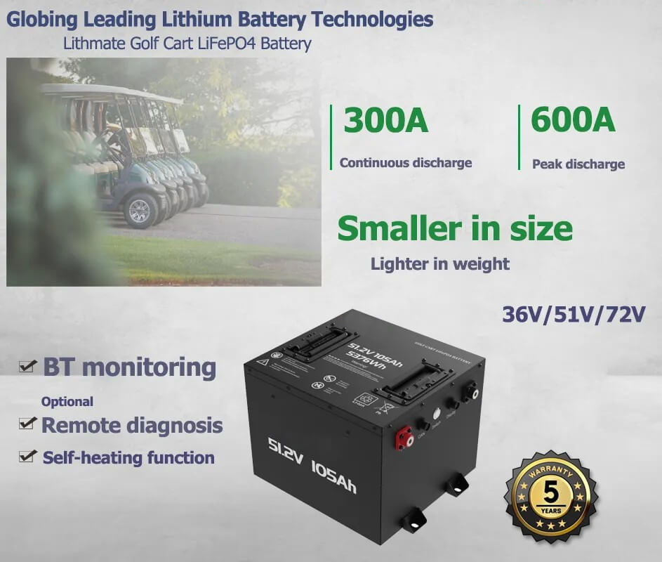 【இன்றே லீட்-ஆசிட்டிலிருந்து மாறுங்கள்】 லித்தியம் கோல்ஃப் கார்ட் பேட்டரி சக்திவாய்ந்த செயல்திறனை வழங்குகிறது, கடினமான நிலப்பரப்புகளுக்கு ஏற்றது மற்றும் உங்கள் கோல்ஃப் விளையாட்டை மேம்படுத்துகிறது, ஒரு சார்ஜில் 50 மைல்கள் வரை செல்லும் ஏற்பாடு, தூர பதட்டத்தை நீக்குகிறது.