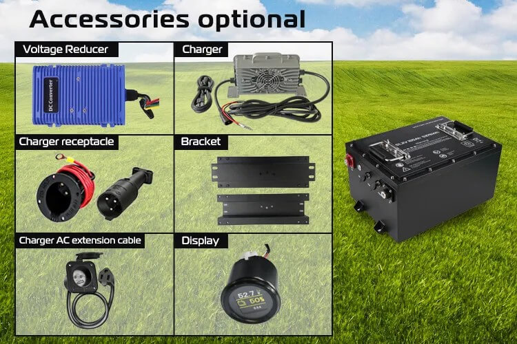【ஸ்மார்ட் பேட்டரி மானிட்டர் எல்சிடி】ஆல் இன் ஒன் லித்தியம் கோல்ஃப் கார்ட் பேட்டரி வலுவான முடுக்கம் மற்றும் செயல்திறனை வழங்குகிறது, பயனர்கள் சவாலான நிலப்பரப்பை வெல்லவும், ஒரே சார்ஜில் தங்கள் கோல்ஃப் வரம்பை 50 மைல்கள் வரை நீட்டிக்கவும் உதவுகிறது.