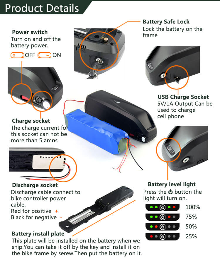 | பொருளின் பெயர் | Electric Bike Kit Battery Electric Bicycle battery 48V 15aH Rechargeable Batteries 18650 cell |