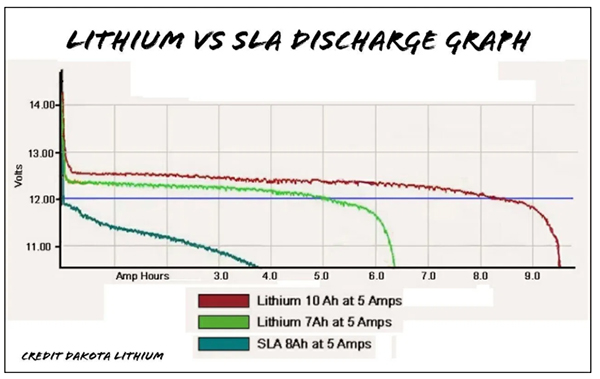 லித்தியம் Vs SLA வெளியேற்ற வரைபடம்