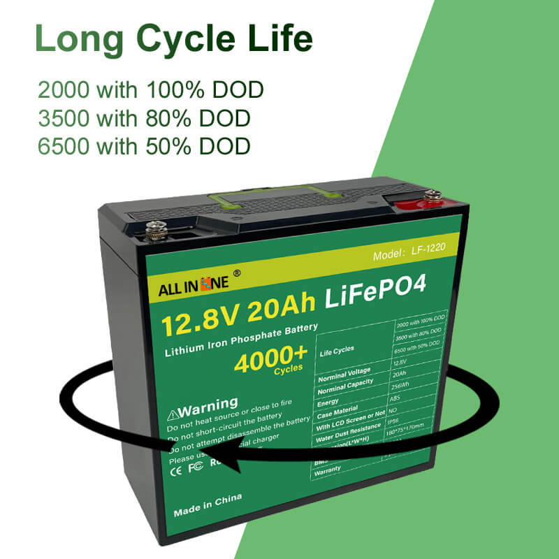 1. நீண்ட சுழற்சி ஆயுள்: முன்னணி அமில பேட்டரியை விட 20 மடங்கு நீண்ட சுழற்சி ஆயுளை வழங்குகிறது. 2000 க்கும் மேற்பட்ட சுழற்சிகள், செல் முழு சக்தியையும் வழங்க முடியும், மாற்று செலவைக் குறைக்க உதவுகிறது மற்றும் உரிமையின் மொத்த செலவைக் குறைக்கிறது.