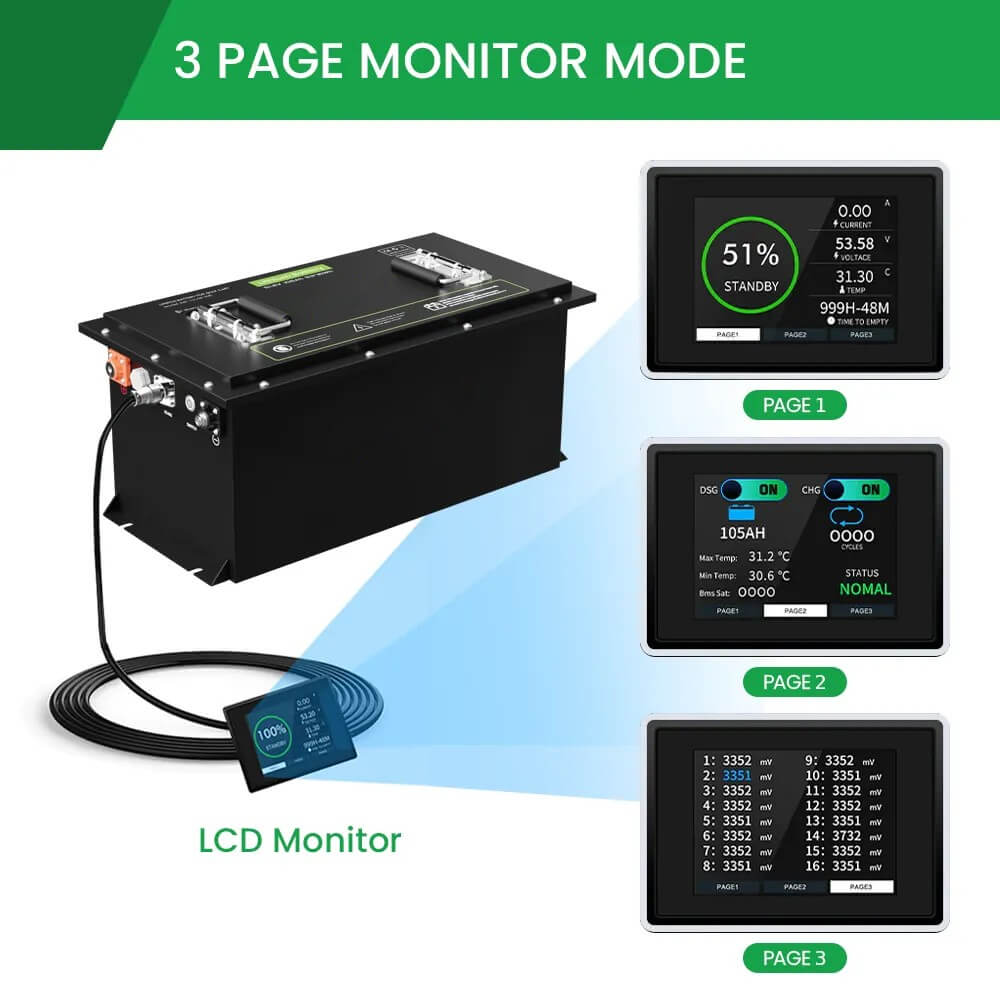 | LFP72-50 அறிமுகம் | 76.8வி | 50Ah | 3840Wh | 470*330*150மிமீ | ≈50 கிலோ |