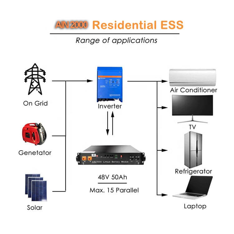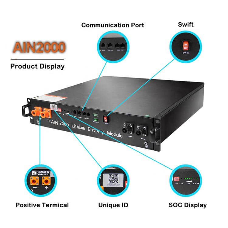 1.AIN2000 48v சூரிய குடும்ப பேட்டரி பாதுகாப்பு மற்றும் சிறந்த சேவை வாழ்க்கையை உறுதிப்படுத்த அதிக செயல்திறன் கொண்ட எல்.எஃப்.பி செல் 3.2 வி 50 ஏஎச் மற்றும் ஈ.வி.