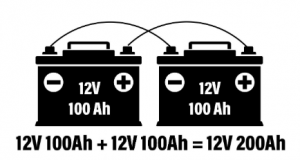 கீழேயுள்ள எடுத்துக்காட்டில், எங்களிடம் இரண்டு 12 வி பேட்டரிகள் உள்ளன, ஆனால் ஆம்ப்-மணிநேரம் 200 ஆ ஆக அதிகரிப்பதை நீங்கள் காண்கிறீர்கள்.